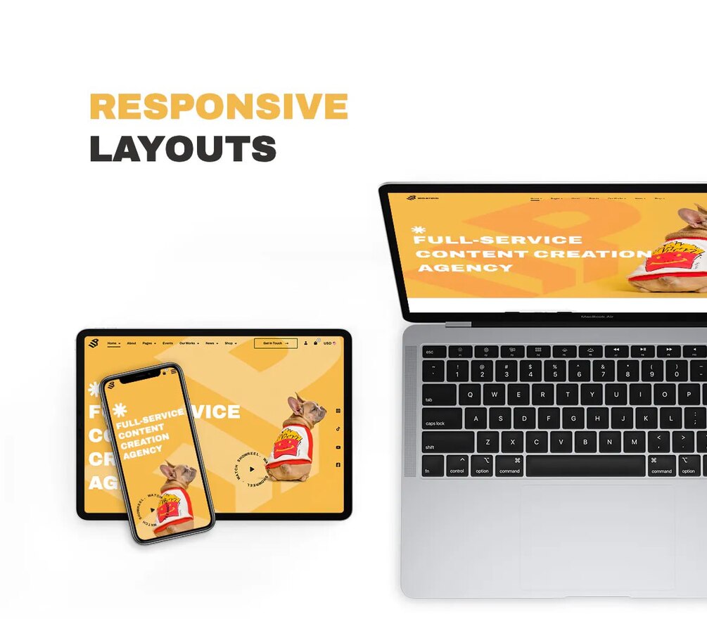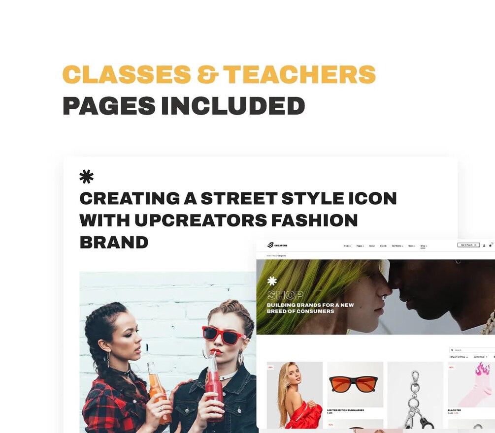 Multipurpose template for Creative agencies, Marketing companies, Streaming channels, SMM Services, Blogs, Portfolios, and stylish Shops. The template has more than 50 unique sections and elements that greatly expand the list of template using purposes and allow you to achieve amazing results and create a competitive and catching site. The template includes three homepages for Agency, Shop and Streamer, trendy online store pages like collections, lookbook and bright viral banners for online shop. It also has Event Page, Several Blog Layouts and other pages for your site.
