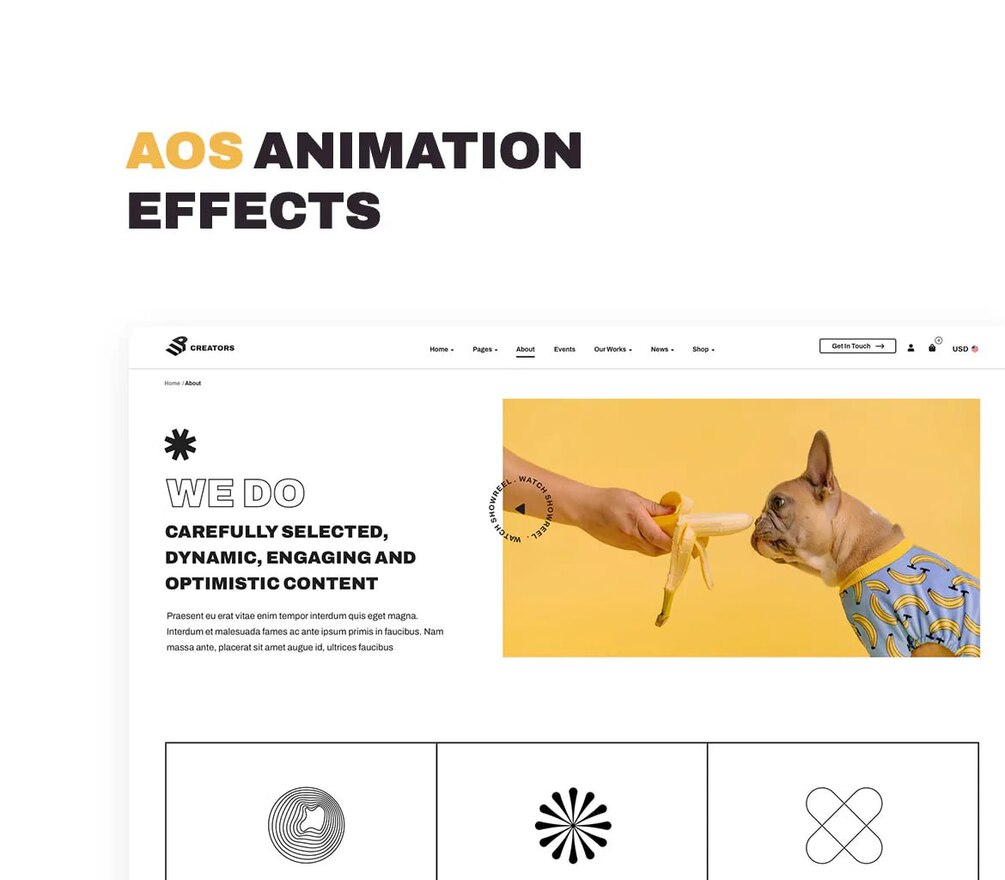 Upcreators is fully responsive with lots of carefully crafted elements that are easy to edit to achieve any of your ideas. Design harmony, thoughtful details, appropriate animation and a nice custom cursor are the features that create a pleasant experience for the visitor and make him come back again.